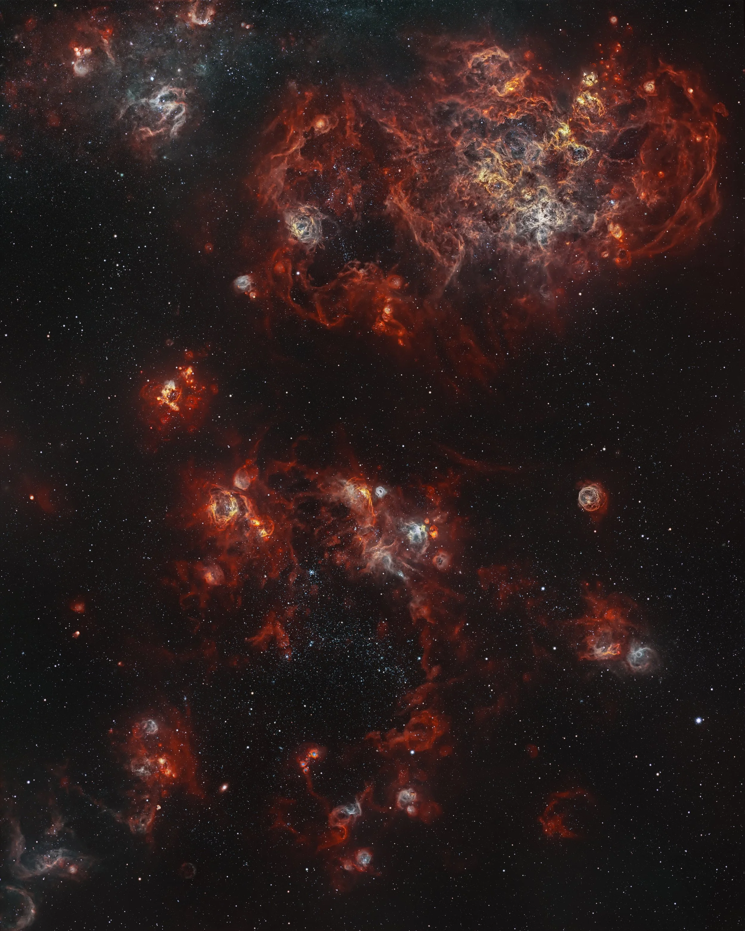 I have finally finished processing the ASV Southern Supercluster LMC Project! This was a truly monumental effort involving 23 contributors who collected more than 600 hours of Ha, OIII, and RGB data. The diversity of the gear was incredible, utilizing more than ten different scopes (ranging from SCTs and refractors to camera lenses) and ten different cameras to produce this dataset.